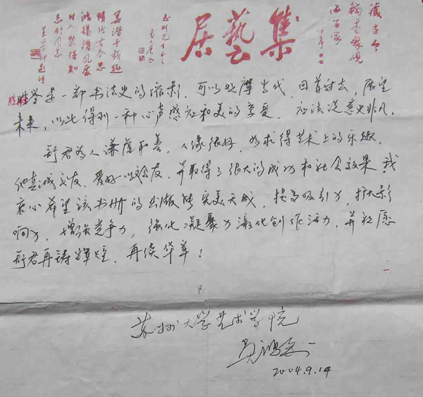舒君为人谦虚和善,人缘很好,为求得艺术上的乐趣,他真诚交友,爱好以文会友,并取得了很大的成功和社会效果。我衷心希望该书册的出版能完美天成,提高吸引力,扩大影响力,增强凝聚力激化创造活力,并祝愿舒君再铸辉煌,再续华章!